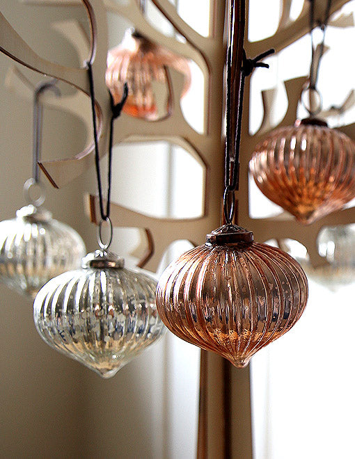 Perfección sencilla en un adorno navideño con acabado plateado antiguo, forma elegante y cordón marrón oscuro. Contrasta y complementa nuestro adorno de cobre del mismo estilo.